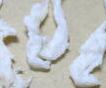 ほとんどありませんが、お湯の中で糸こんにゃくからとけだし硬く固まった状態(右図)で混入している場合もあります。