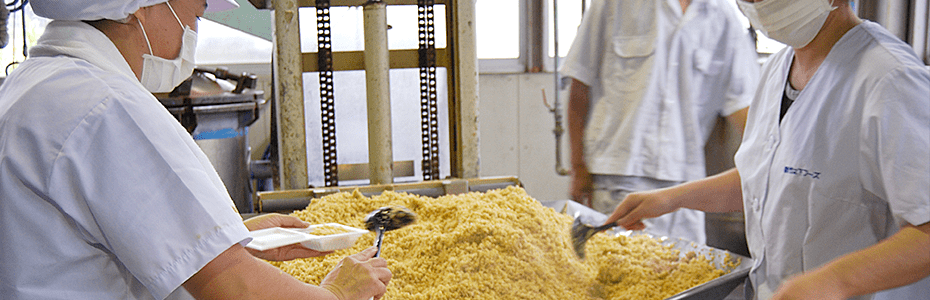 浸す、炊く、発酵、この昔ながらの製法を今もなお手作業で行うことで、機械では判断できない、天候や湿度などの変化に対応し、100%の美味しさをムラなく変わらぬ味に作りあげています。
