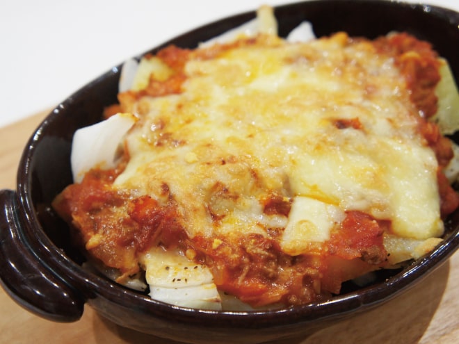 納豆(丹念納豆)、じゃがいも、しめじ、玉ねぎ、にんじん、えのき、にんにく、合挽き肉、トマトの水煮、ケチャップ、マギーブイヨン、粗びき塩コショウ、とろけるチーズ