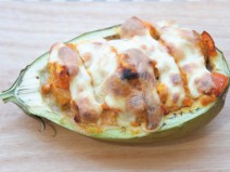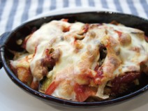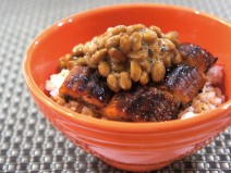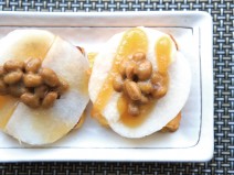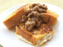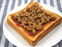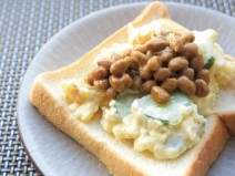 納豆(高千穂納豆)、ひき肉、ナス、玉ねぎ、人参、しいたけ、トマトの水煮、ケチャップ、塩コショウ、コンソメスープの素、だし醤油、りんごジュース、キャベツ、レタス、オクラ、チーズ、食パン