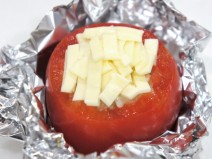 ③トマトに②で作ったものを入れ、上からチーズをかけます。