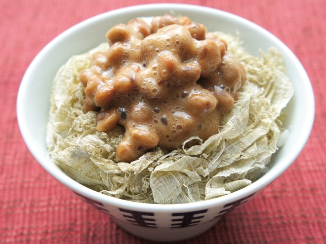①ご飯にとろろ昆布、納豆をかけたら完成です。