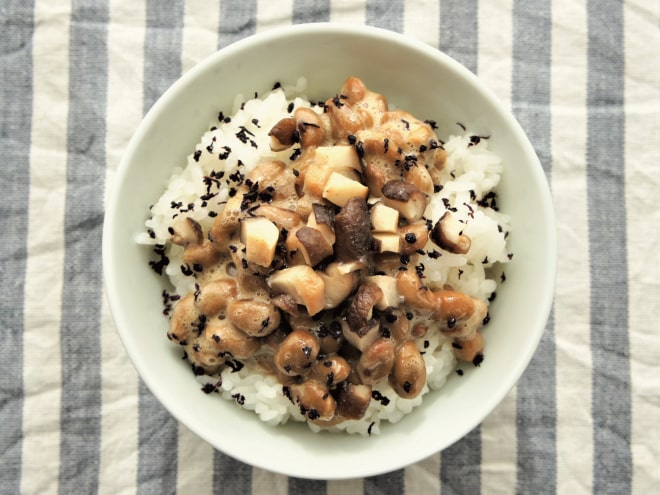 納豆(高千穂納豆)、椎茸、ゆかり、ご飯