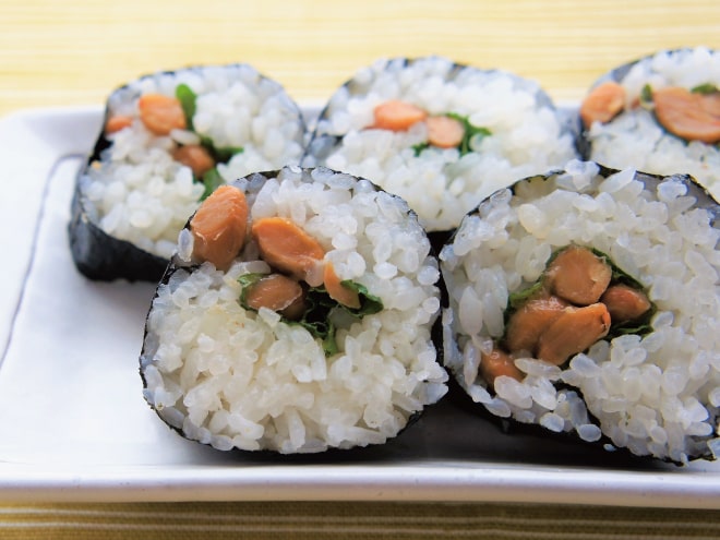 納豆(丹念納豆)、焼きのり、しそ、寿司酢、ご飯