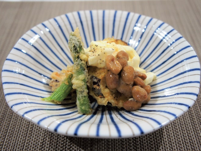 アスパラとナスの天ぷらタルタル納豆|納豆を使用した簡単料理、レシピ・作り方を紹介