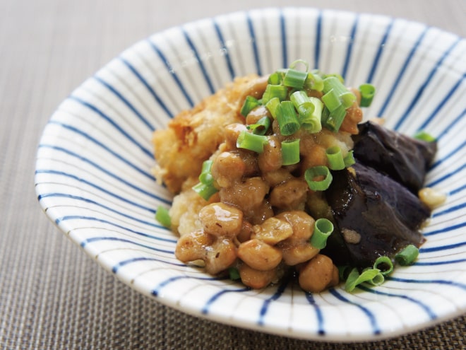 白身フライと揚げナスの納豆おろしポン酢|納豆を使用した簡単料理、レシピ・作り方を紹介