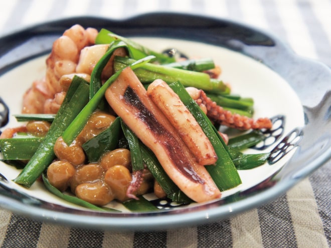 納豆(丹念納豆)、イカ、ニラ、醤油、ニンニク、酒、みりん