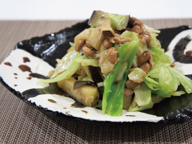 納豆とツナのキャベツ炒め