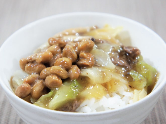 牛肉とキャベツの納豆あんかけ丼の作り方
