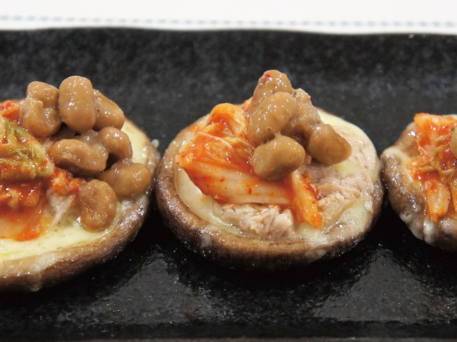 納豆(丹念納豆)、椎茸、シーチキン、キムチ、とろけるチーズ