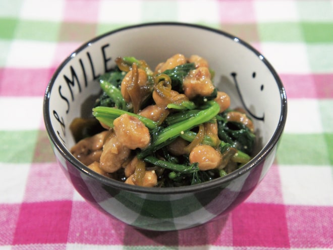 めかぶほうれん草納豆|納豆を使用した簡単料理、レシピ・作り方を紹介