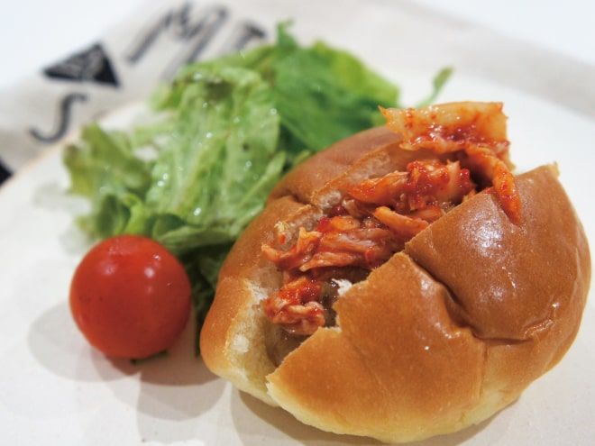 ②よく混ぜた納豆とキムチをはさんだら完成です。
