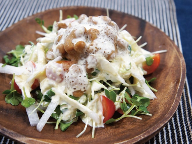 大根とかいわれの納豆シーザーサラダ風