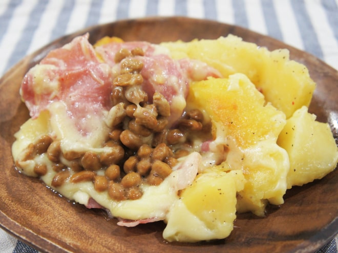 生ハムポテトチーズ納豆焼き
