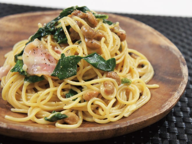 ほうれん草とベーコンの納豆オイルパスタの作り方