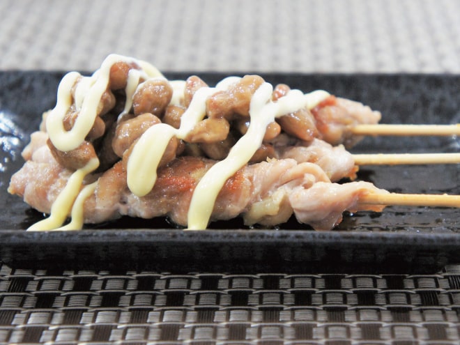 納豆(丹念納豆)、せせり串、塩コショウ、マヨネーズ