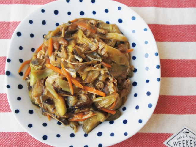 胡麻香る茄子と豚肉の納豆中華あんの作り方