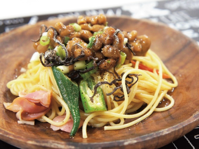 納豆とオクラの塩昆布ぺペロンチーノの作り方