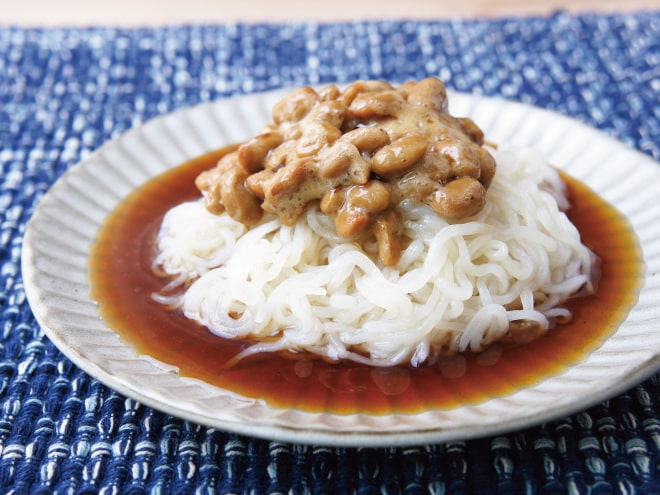 納豆(丹念納豆)、こんにゃく麺、冷やし中華レモンダレ