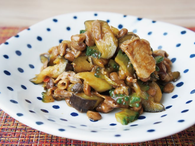 茄子とゴーヤの納豆回鍋肉