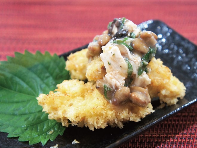 白身フライ納豆梅ネギ塩ダレ