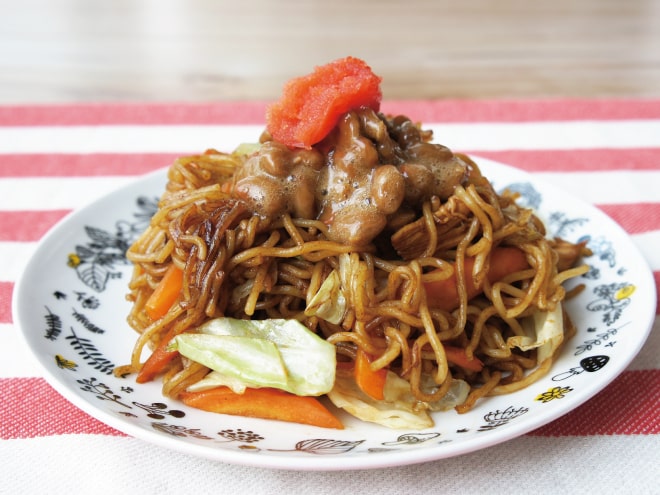 鶏胸肉と明太子の納豆焼きそばの作り方