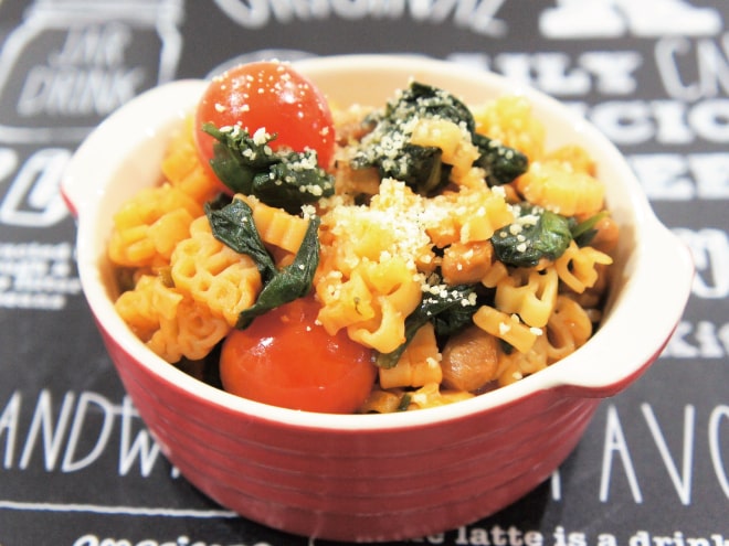 ほうれん草とトマトのショートパスタ納豆の作り方