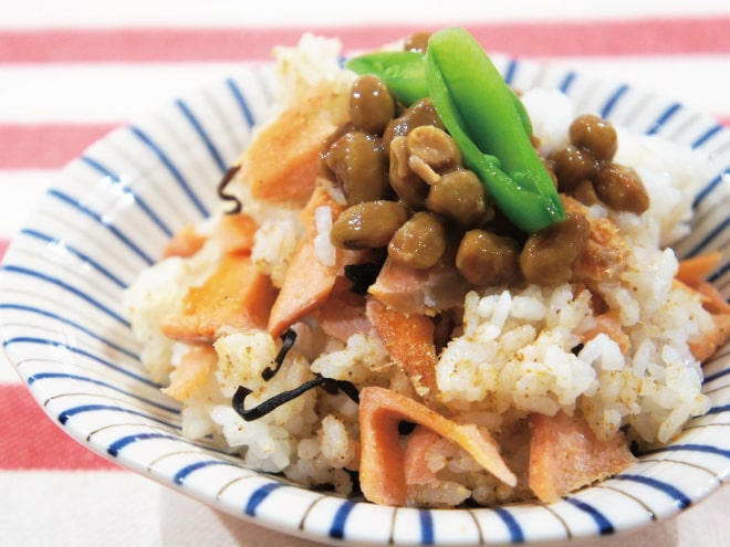 鮭と昆布の混ぜ納豆ご飯|納豆を使用した簡単料理、レシピ・作り方を紹介