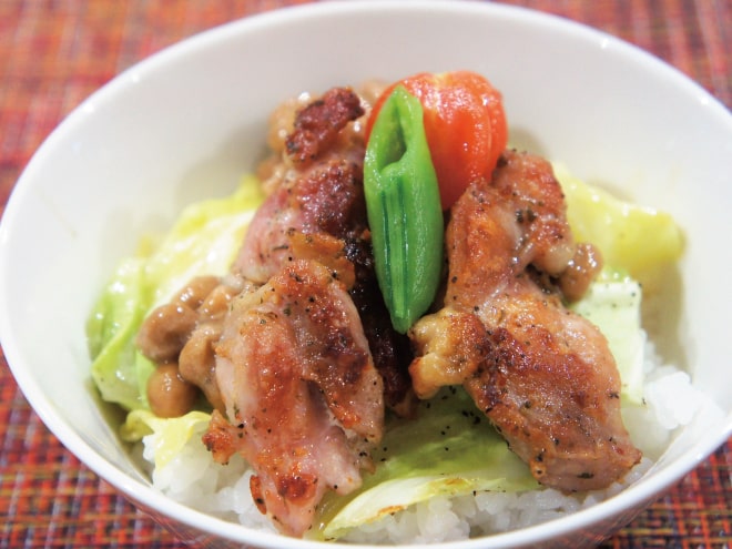 キャベツとハーブソルトチキンの納豆ご飯の作り方
