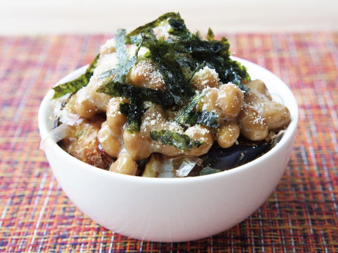 チーズ焼きナス海苔納豆かけご飯の作り方