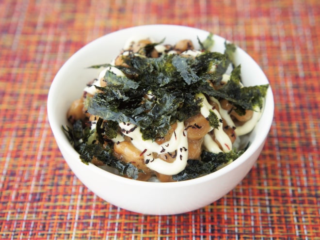 納豆(丹念納豆)、韓国海苔、マヨネーズ、ゆかり、ご飯