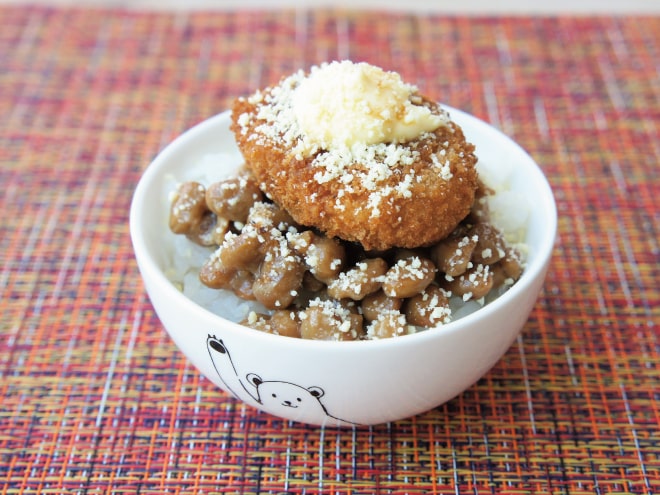 コロッケチーズ納豆ご飯