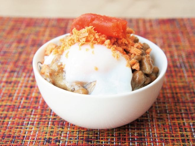 シャケ明太子温泉卵納豆ご飯 材料納豆(丹念納豆)、シャケフレーク、明太子、温泉卵、ご飯シャケ明太子温泉卵納豆ご飯の作り方①お茶碗にご飯をついだら、よく混ぜた納豆をかけます。②温泉卵、シャケ、明太子をのせたら完成です。