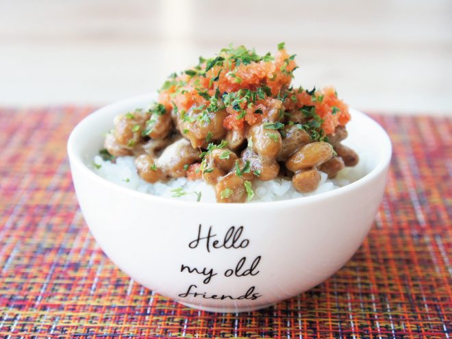 納豆(丹念納豆)、明太子、青のり、ご飯