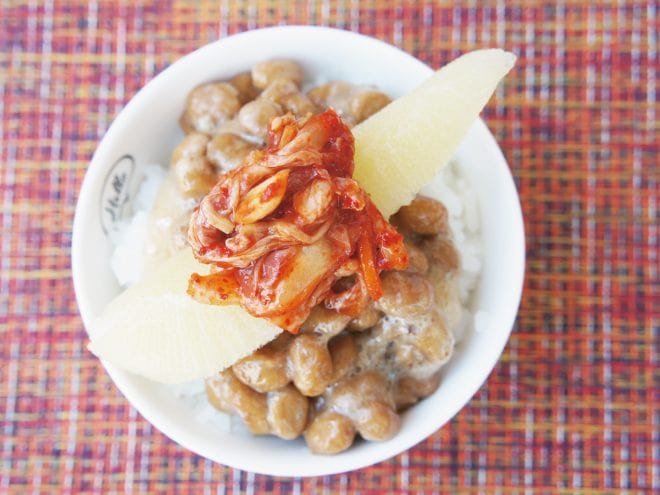 納豆(丹念納豆)、数の子、キムチ、ご飯
