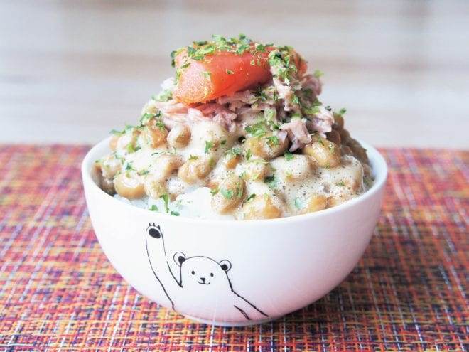 納豆(丹念納豆)、明太子、シーチキン、青のり、ご飯