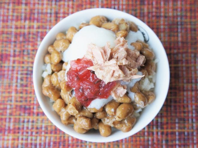 納豆梅くらげシーチキン温玉ご飯の作り方
