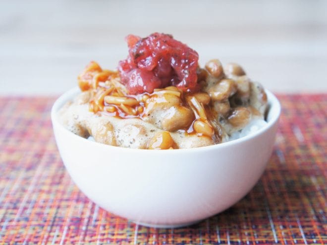 納豆梅くらげなめ茸キムチご飯 材料納豆(丹念納豆)、梅くらげ、なめ茸キムチ、ご飯納豆梅くらげなめ茸キムチご飯の作り方①お茶碗にご飯をついだら、よく混ぜた納豆をかけます。②梅くらげ、なめ茸キムチをかけたら完成です。