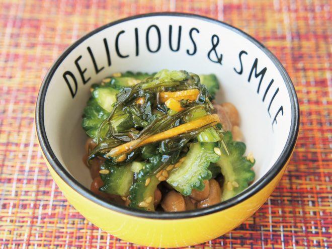 ゴーヤと野沢菜納豆 材料納豆(丹念納豆)、ゴーヤ、塩、酢、砂糖、薄口醤油、濃口醤油、塩昆布、白ごま、わさび野沢菜こんぶゴーヤと野沢菜納豆の作り方①ゴーヤは、半分にカットしたら、中のワタを取り除いて薄切りにし、塩を振っておきます。②しばらく置いたゴーヤの水分を絞り、酢、砂糖、薄口醤油、濃口醤油、塩昆布、白ごまを加えてよく和えます。③お茶碗によく混ぜた納豆を入れたら、ゴーヤの浅漬けとわさび野沢菜こんぶをのせて完成です。