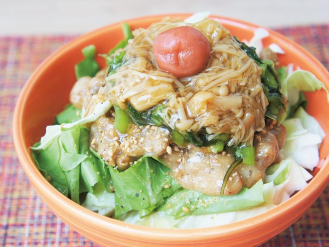 野沢菜なめ茸納豆サラダ 材料納豆(丹念納豆)、レタス、キャベツ、野沢菜こんぶ、梅、なめ茸、すりごま、ポン酢、オリーブオイル野沢菜なめ茸納豆サラダの作り方①レタスとキャベツは、食べやすい大きさに切ったら、器に盛りつけます。②ポン酢とオリーブオイル、よく混ぜた納豆をかけます。③すりごま、野沢菜こんぶ、なめ茸をかけたら、梅をのせて完成です。
