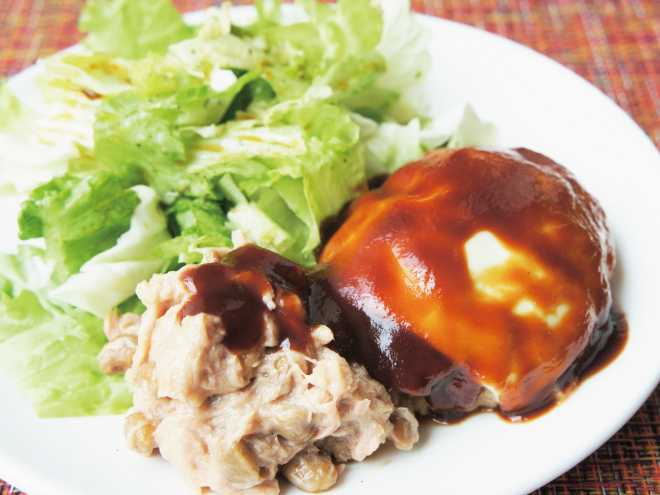 納豆ツナソースとチーズハンバーグ