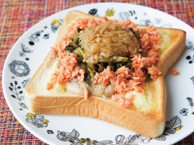 マヨシャケ高菜なめ茸納豆トーストの作り方