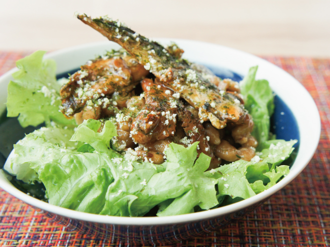 さんまの蒲焼と納豆チーズサラダの作り方