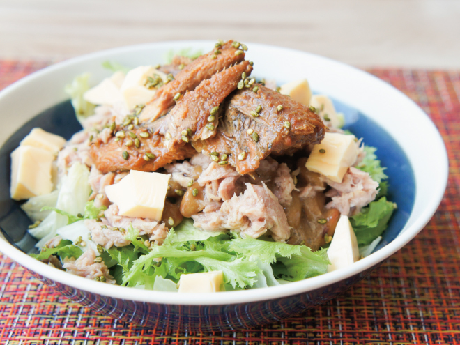 さんまの蒲焼シーチキン納豆あおさチーズサラダ