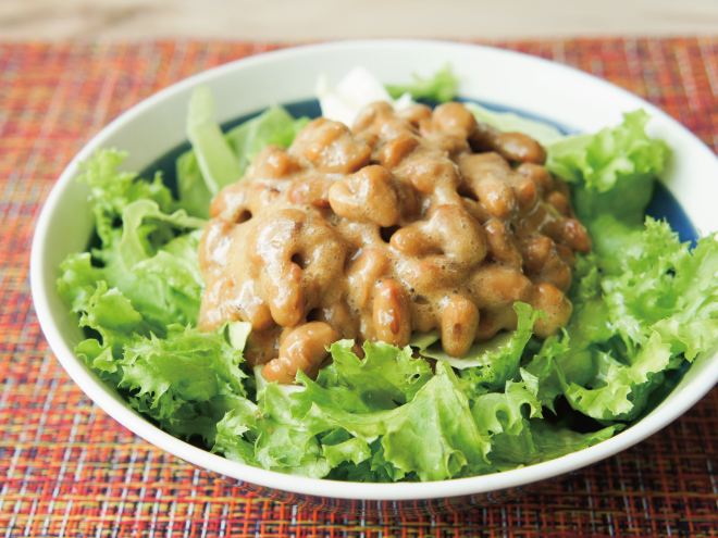 納豆(丹念納豆)、レタス、キャベツ、岩塩、オリーブオイル