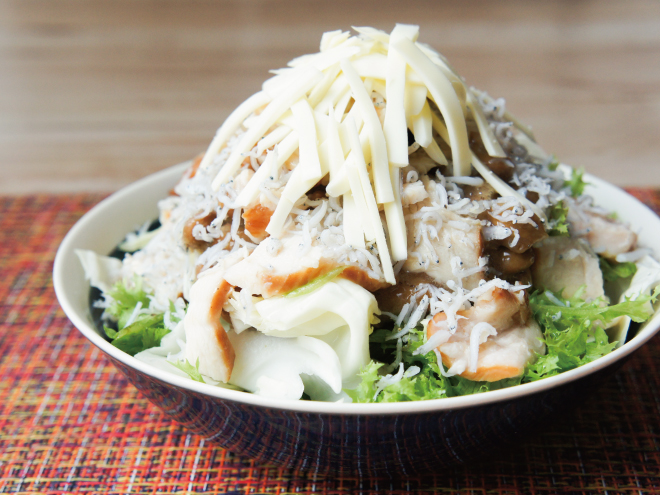 蒸し鶏チーズ納豆ちりめんサラダ