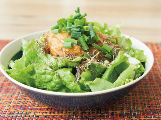 なめ茸ねぎシャケ昆布納豆サラダ 材料納豆(丹念納豆)、レタス、キャベツ、シャケフレーク、なめ茸、昆布ふりかけ、ねぎ、オリーブオイル、粗挽き塩こしょうなめ茸ねぎシャケ昆布納豆サラダの作り方①レタスとキャベツは、食べやすい大きさに切ったら、器に盛りつけます。②オリーブオイル、粗挽き塩こしょう、よく混ぜた納豆をかけます。③シャケフレーク、なめ茸、昆布ふりかけ、刻みねぎをかけたら完成です。