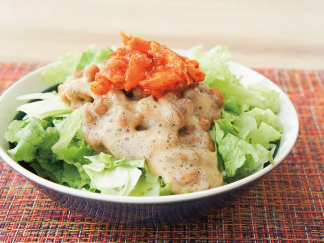 サーモンハラスユッケ納豆サラダ 材料納豆(丹念納豆)、レタス、キャベツ、サーモンハラスユッケ、オリーブオイルサーモンハラスユッケ納豆サラダの作り方①レタスとキャベツは、食べやすい大きさに切ったら、器に盛りつけます。②オリーブオイル、よく混ぜた納豆をかけます。③サーモンハラスユッケをのせたら完成です。