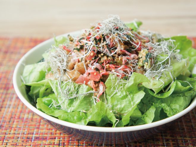 梅ちりめん昆布納豆サラダ 材料納豆(丹念納豆)、レタス、キャベツ、梅ちりめんの佃煮、昆布ふりかけ、オリーブオイル、粗挽き塩コショウ梅ちりめん昆布納豆サラダの作り方①レタスとキャベツは、食べやすい大きさに切ったら、器に盛りつけます。②オリーブオイル、粗挽き塩コショウ、よく混ぜた納豆をかけます。③梅ちりめんの佃煮、昆布ふりかけをかけたら完成です。