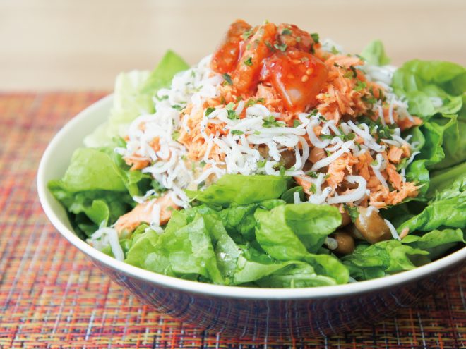 鮭しらすタコキムチ青のり納豆サラダの作り方